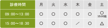 休診日/日曜・祝日 ※土曜(13:00迄)