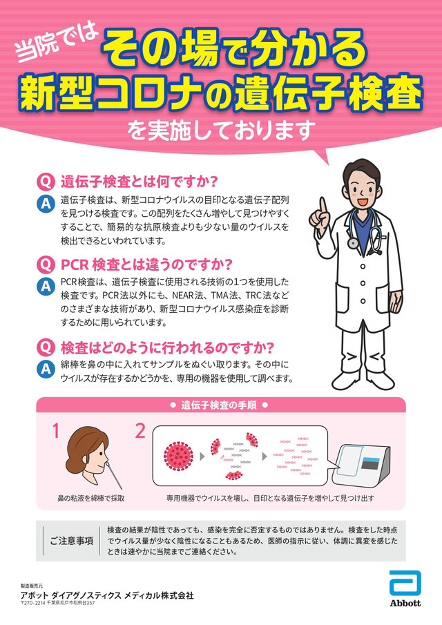 原田医院ではその場でわかる新型コロナの遺伝子検査を実施しております。